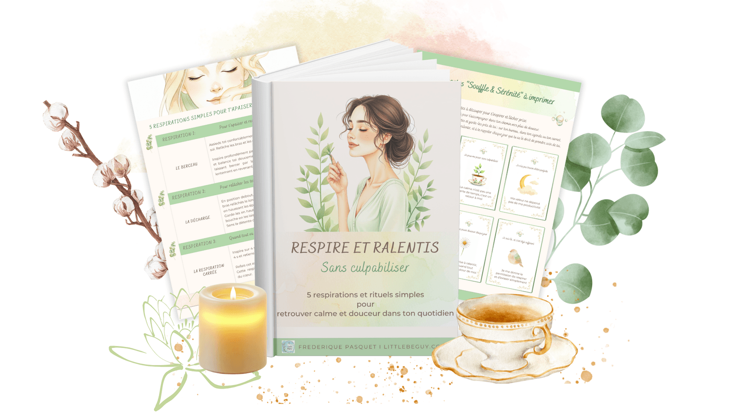 Imagine retrouver calme et douceur dans ton quotidien en quelques minutes, grâce à des rituels simples et pratiques. Avec ce guide PDF "Respire et ralentis sans culpabiliser" que j'ai créé spécialement pour toi, tu vas :
